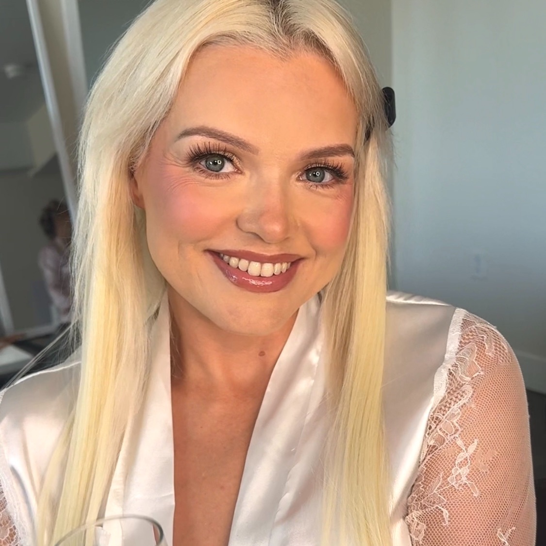 Arrive with a clean, makeup-free face. Consistent skincare leading up to the wedding makes the biggest difference, and I’ll guide you on best practices.